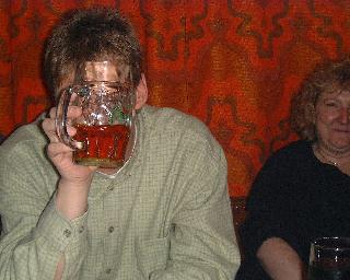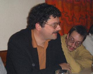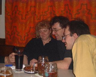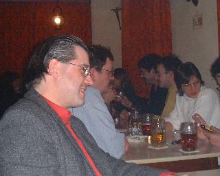 Marcel (vorne links und hier links neben mir sitzend :-) wollte absolut nicht fotografiert werden. Ich hoffe, ich habe seine Schokoladenseite erwischt. |